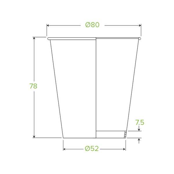 Our Green Line BioCups – 10 and 12oz (80mm) diameter BioCups – all fit our small lid size.
