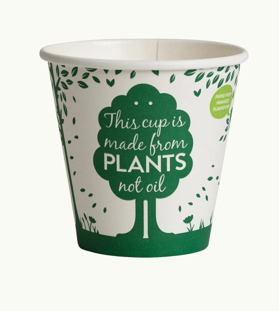 Our paper is sourced from responsibly managed plantations and lined with naturally advanced Ingeo™ bioplastic. It also has a significantly lower carbon footprint than the fossil fuel based polymers that it replaces, because the manufacture of Ingeo™ emits fewer greenhouse gasses (GHGs) than the comparable manufacture of all common petrochemical-based plastic1. This innovation of turning plants into plastic allows us to exclude non-renewable resources (such as oil) from the production of our EcoCup.