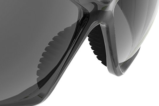 - Rubber nose pad and co-injected temple pads for superior comfort and a non-slip fit