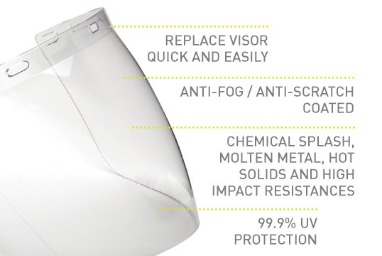 TUFF-SHIELD Clear Visor to suit TS-BG & HHBGE, anti-fog & anti-scratch coated, AS/NZS rated for Extra High Impact