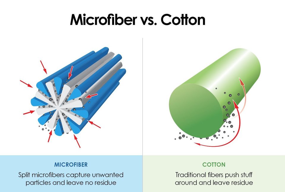 Microfibre clothes are Green, allowing you to colour code cleaning supplies