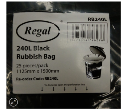 240L Black Bin Liners. Extra thick for strength.