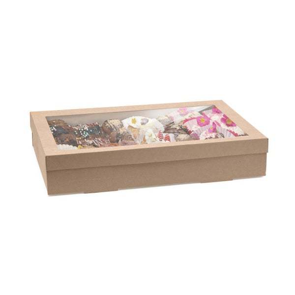 Our catering boxes and lids are made from sustainably sourced FSC™ certified paper. The paper is home and industrially compostable and recyclable in kurbside recycling if clean. BioPak catering trays are available in 5 sizes (XS-XL).