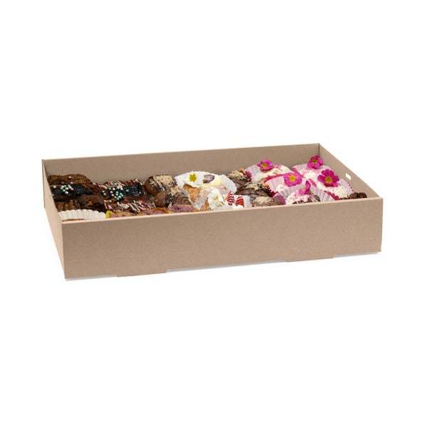 Our carry tray boxes are made from unlined and sturdy paperboard. With a convenient die-cut carry handle, they are perfect for transporting large meals.