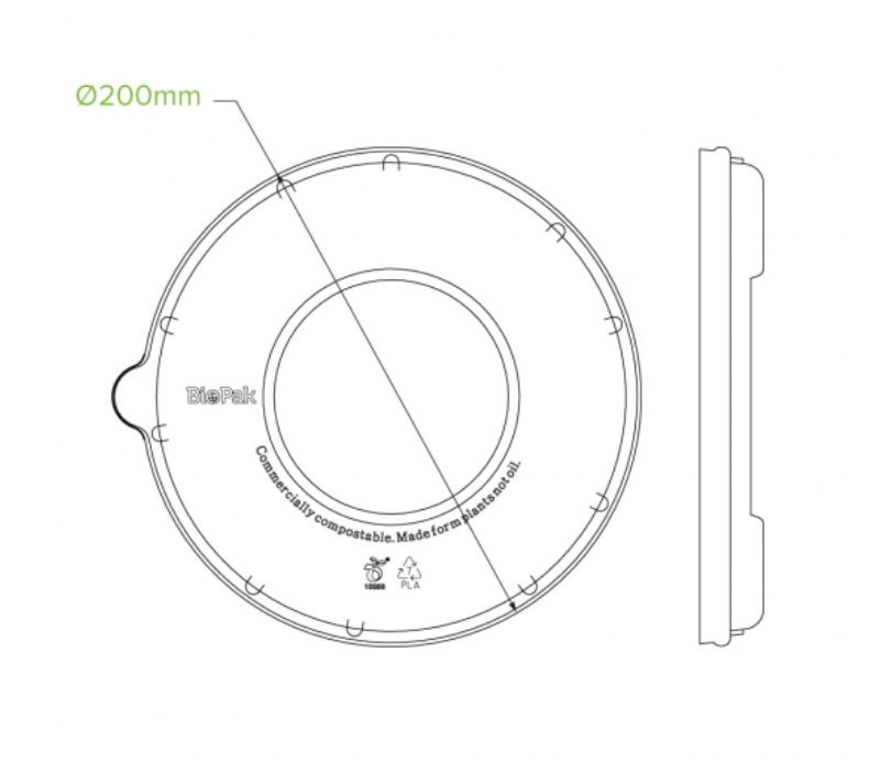 800-1180ml (24-40oz) Bowl PLA lid, Clear - BioPak