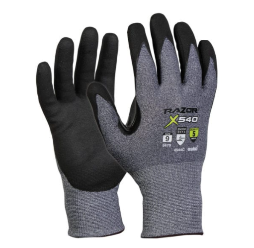 Razor X540 Cut Level 5 nitrile foam coat glove with reinforced thumb crotch