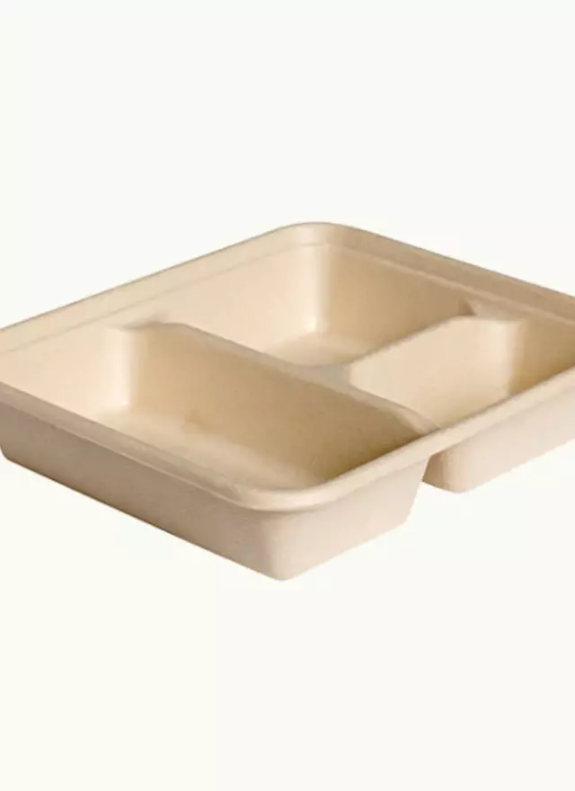 3 Compartment Sugarcane Box & Lid. Carton 200 sets - Ecoware