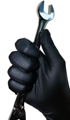 Black Rocket Xtra Grip Nitrile Disposable Gloves feature extra technology-enhanced texture. The texture is made up of grooves and ridges that create a rough and grippy surface area on the gloves. The incredibly grippy Black Rocket Xtra Grip Nitrile Disposable Gloves are suited for use across the automotive, industrial, building, coatings & mining sectors.