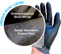 They feature a tough industrial resistant black nitrile outer, and a soft sweat absorbing flock lined inner to keep your hands cool and comfy while you work. Depending on the application that you are using them for X-GUARD can be used as a disposable and/or a reusable glove.