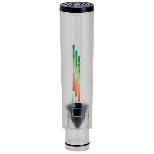 Audio-visual alarm indicates when the battery charge and/or filter replacement is required.