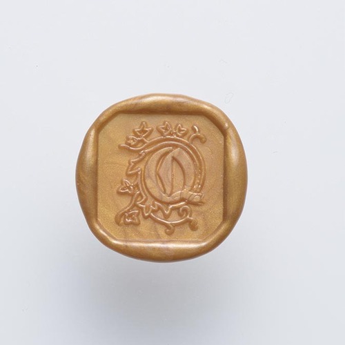 This Herbin Seal is made from 5mm thick brass and the handle is varnished wood. Handle is screwed into the brass. Seal leaves the letter impression with a square around it in the wax. 20x20mm. Illuminated letter Q.